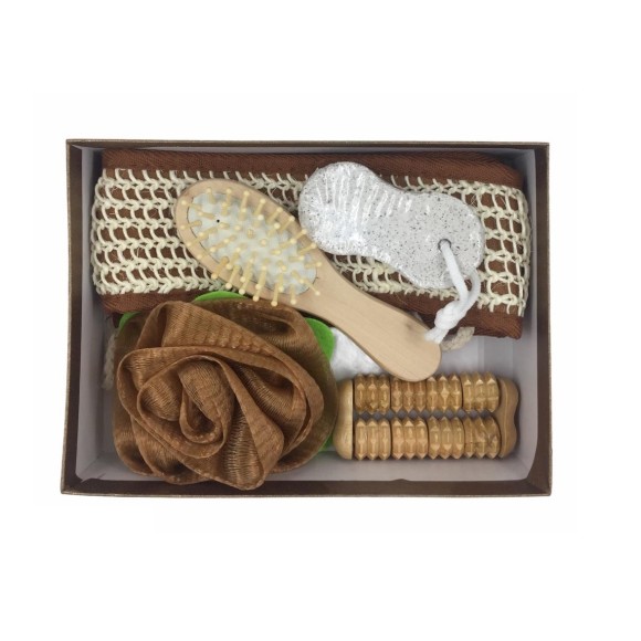 1 Escova, 1 Bucha, 1 Esponja de Costas, 1 Lixa e 1 Massageador