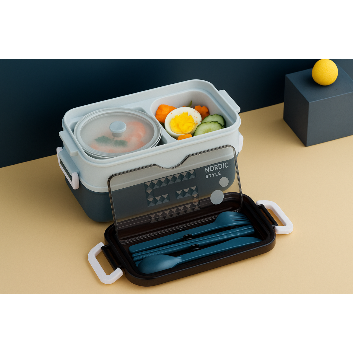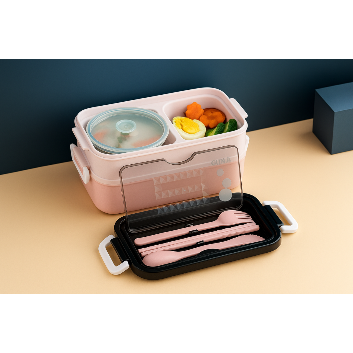 Lancheira com Garfo e Colher Bento Box de Plástico