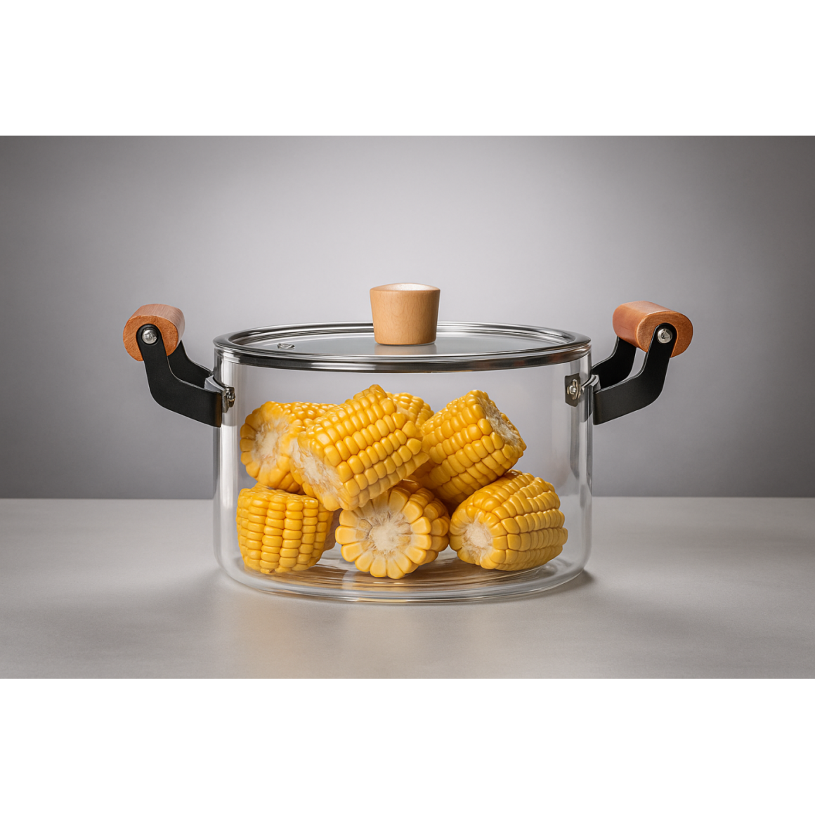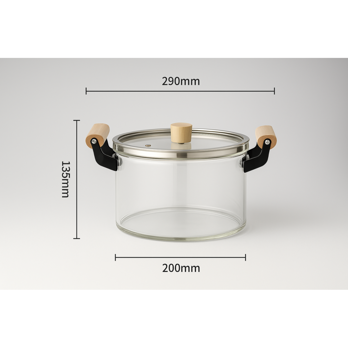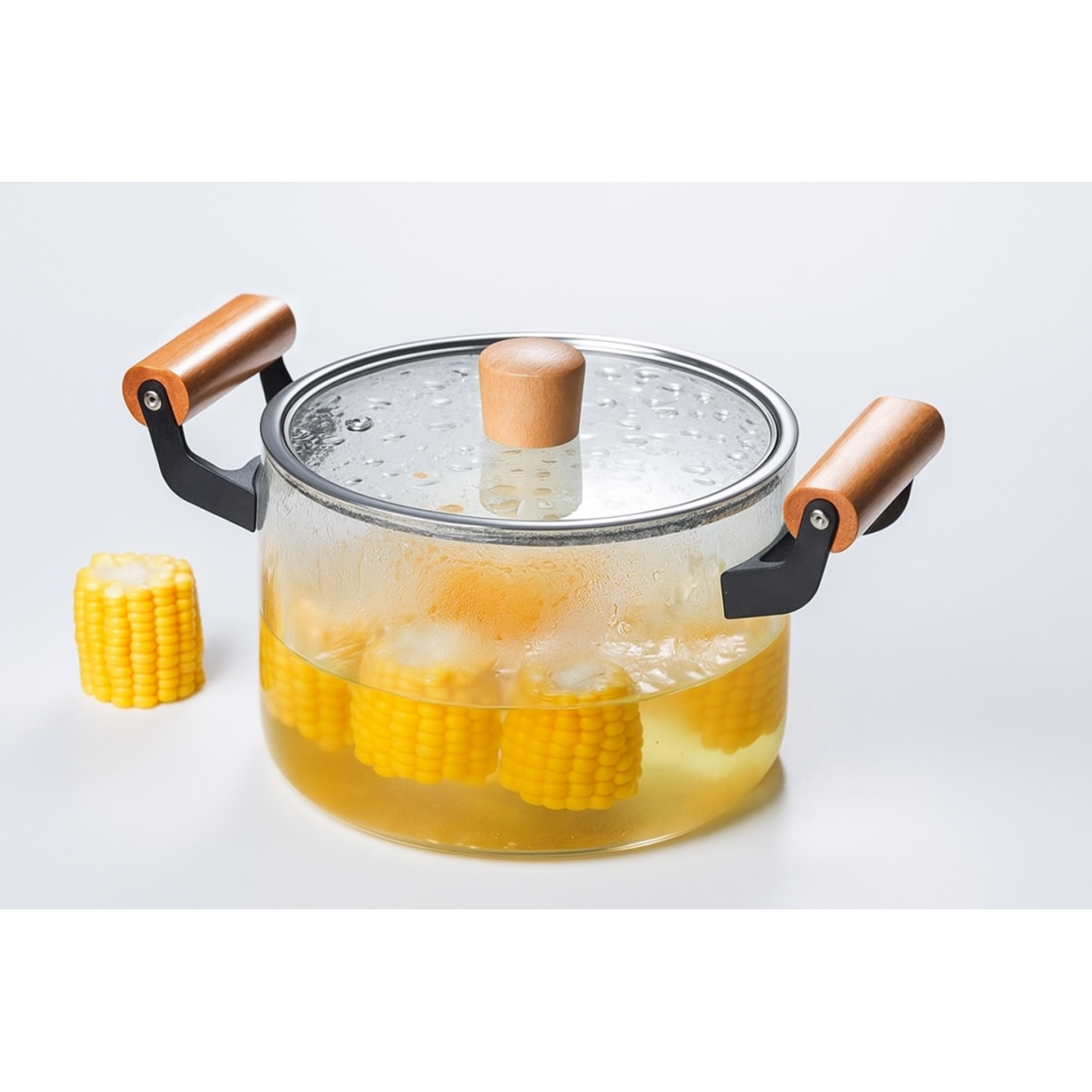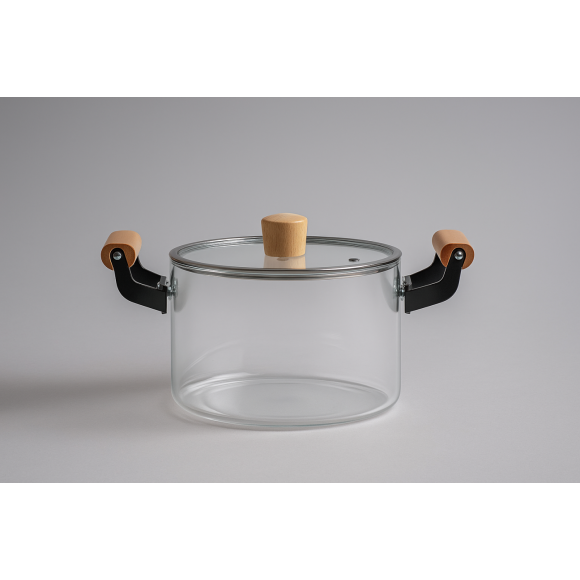 Caçarola de Vidro com Tampa Alça de Madeira 3500ML