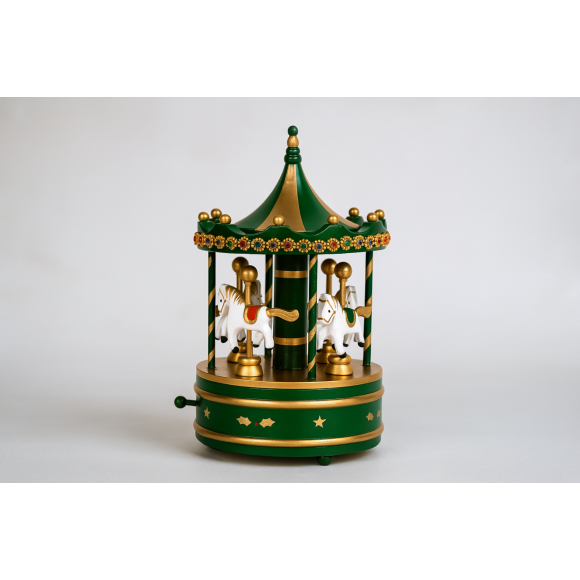 Enfeite de Natal Musical Carrossel – peça encantadora que traz movimento, música e brilho para deixar sua decoração natalina ainda mais mágica.