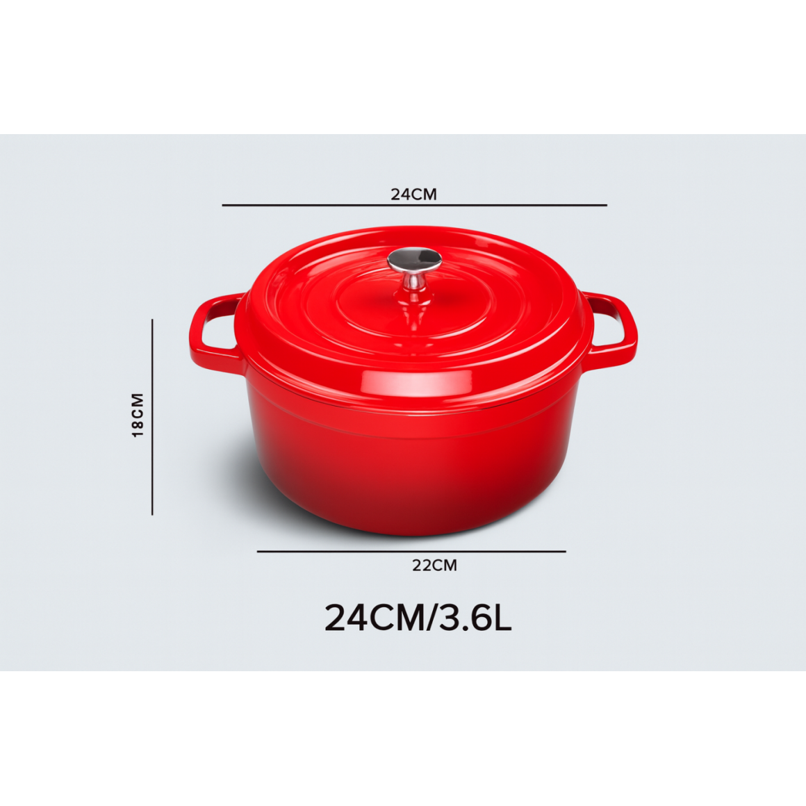 CAÇAROLA DE FERRO ESMALTADO VERMELHA 24CM