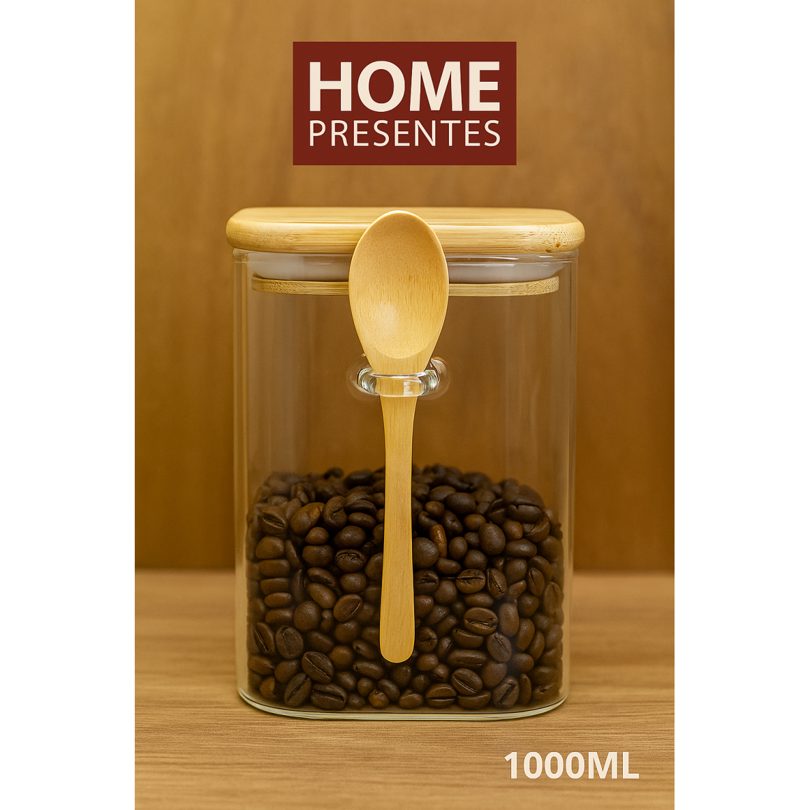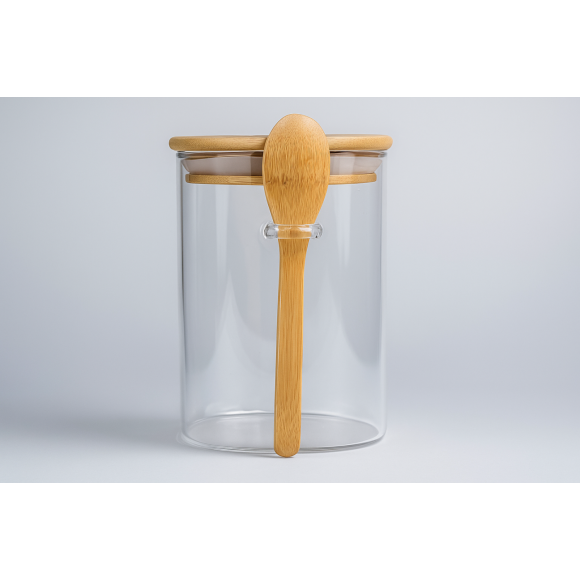 POTE DE VIDRO COM COLHER DE BAMBU 1000ML