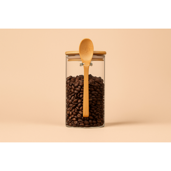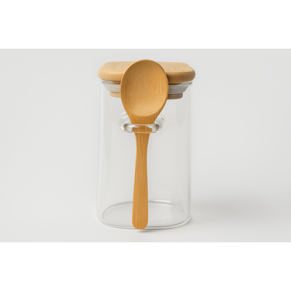 POTE DE VIDRO COM COLHER DE BAMBU 350ML