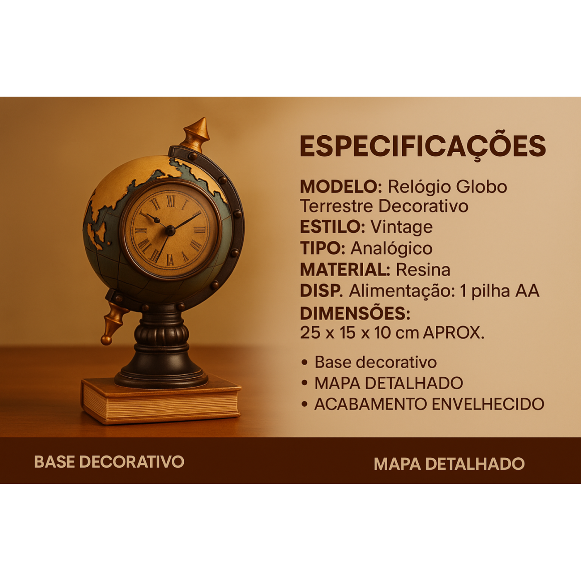 ENFEITE DE GLOBO DE RESINA COM RELOGIO