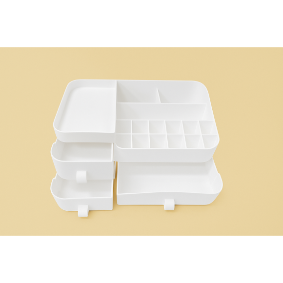 Com divisórias bem distribuídas e acabamento moderno, é perfeito para bancadas, penteadeiras ou até mesmo dentro de armários. Seu material resistente garante durabilidade, enquanto o visual clean combina com qualquer ambiente.