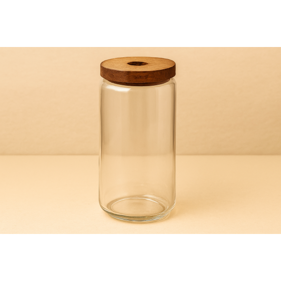 O corpo em vidro transparente facilita a visualização do conteúdo, enquanto a tampa de madeira adiciona um toque natural e elegante à decoração. Versátil, pode ser utilizado também para organização de utensílios ou objetos decorativos.