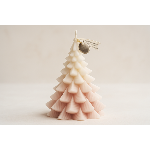 Design delicado em formato de pinheiro, com acabamento degradê bege e branco.
