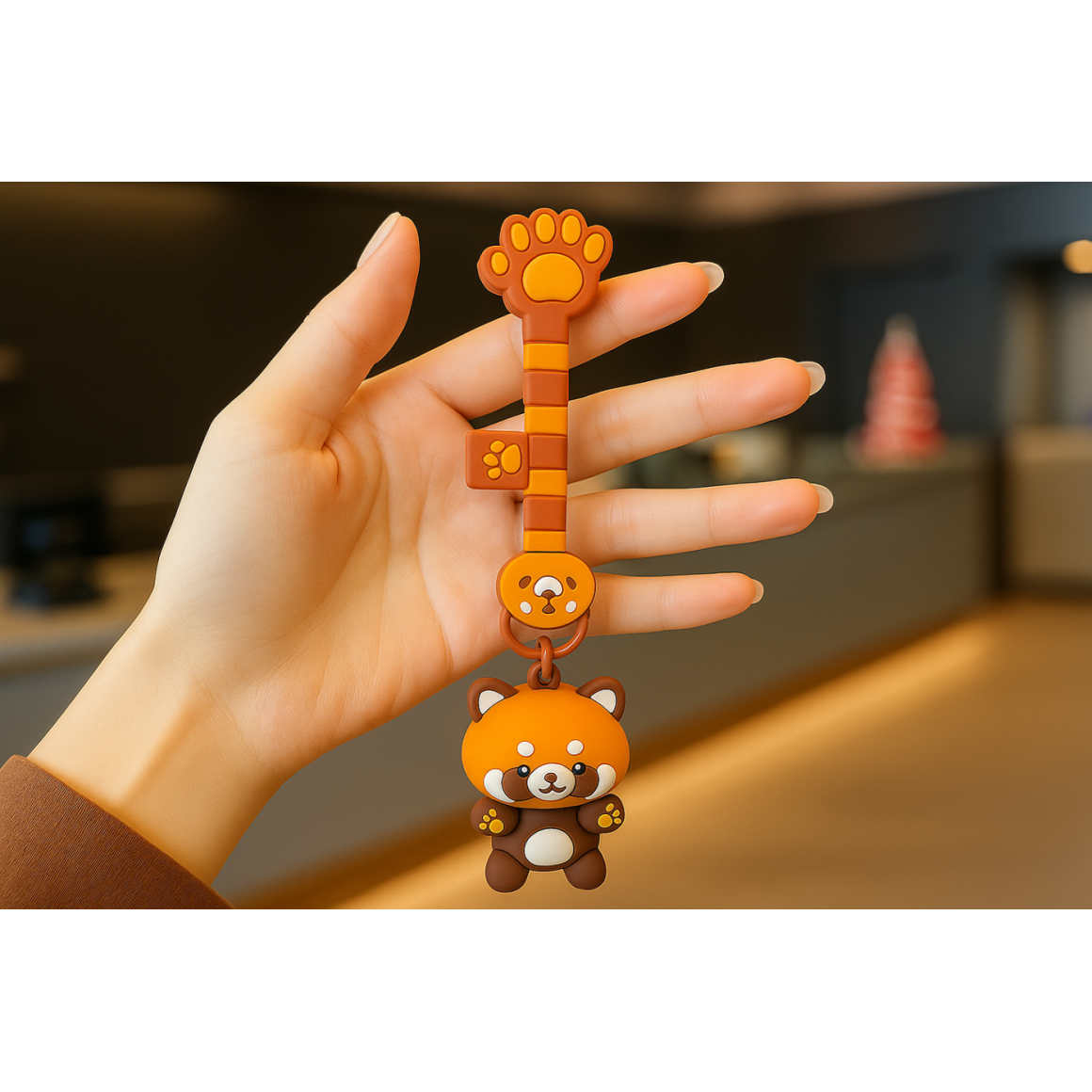 Design fofo em formato de panda-vermelho, com ótimo acabamento.