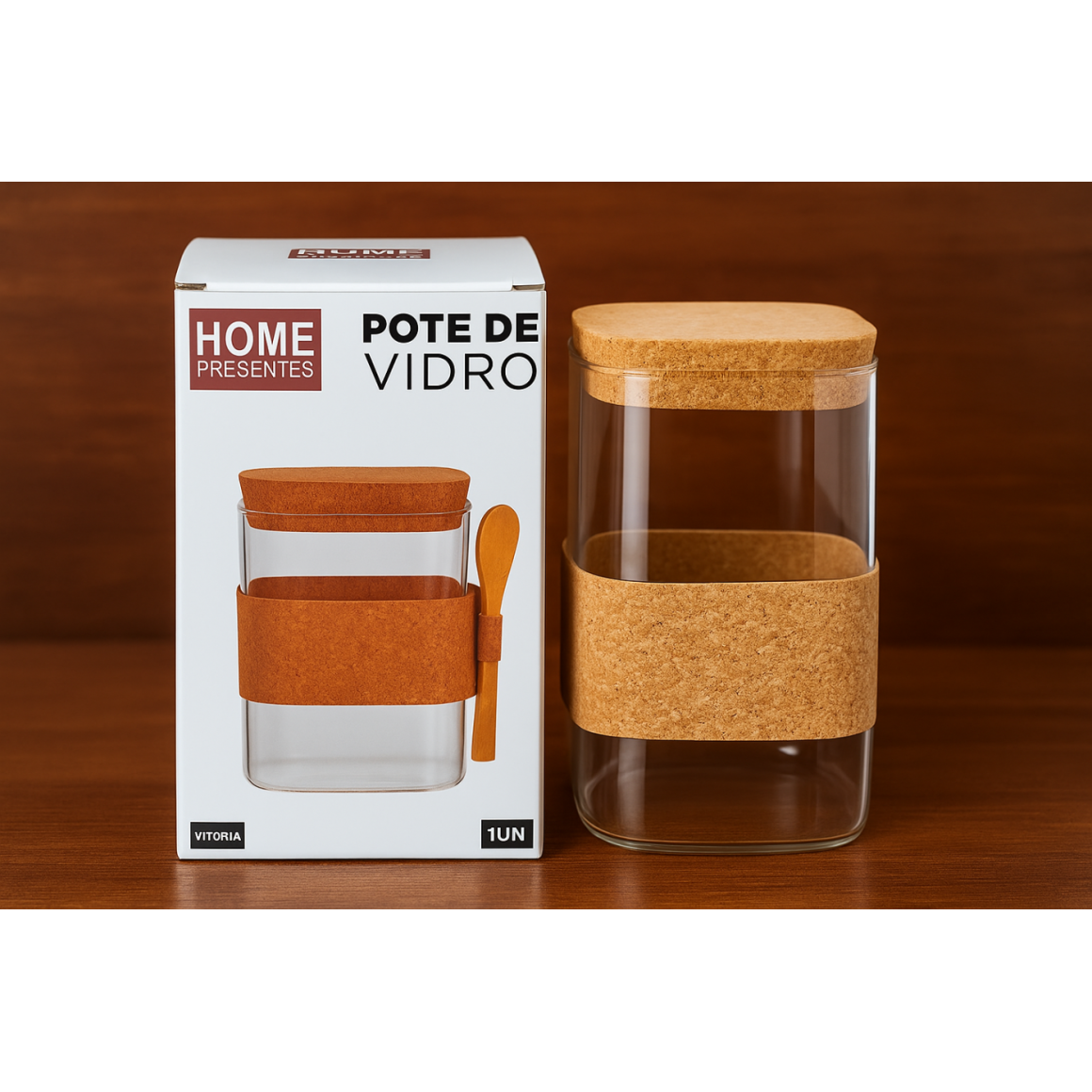 Pote de Vidro com Tampa de Madeira