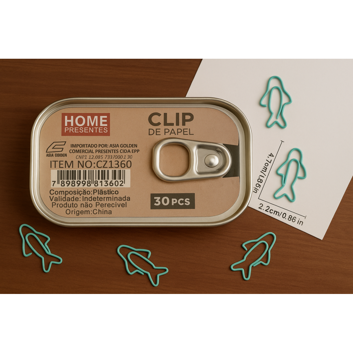 Clips de Papel Metálicos em Lata Temática – Formato Sardinha