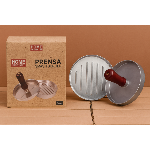 Prensa de Hambúrguer em Aço Inox – ideal para modelar hambúrgueres caseiros com praticidade e uniformidade.