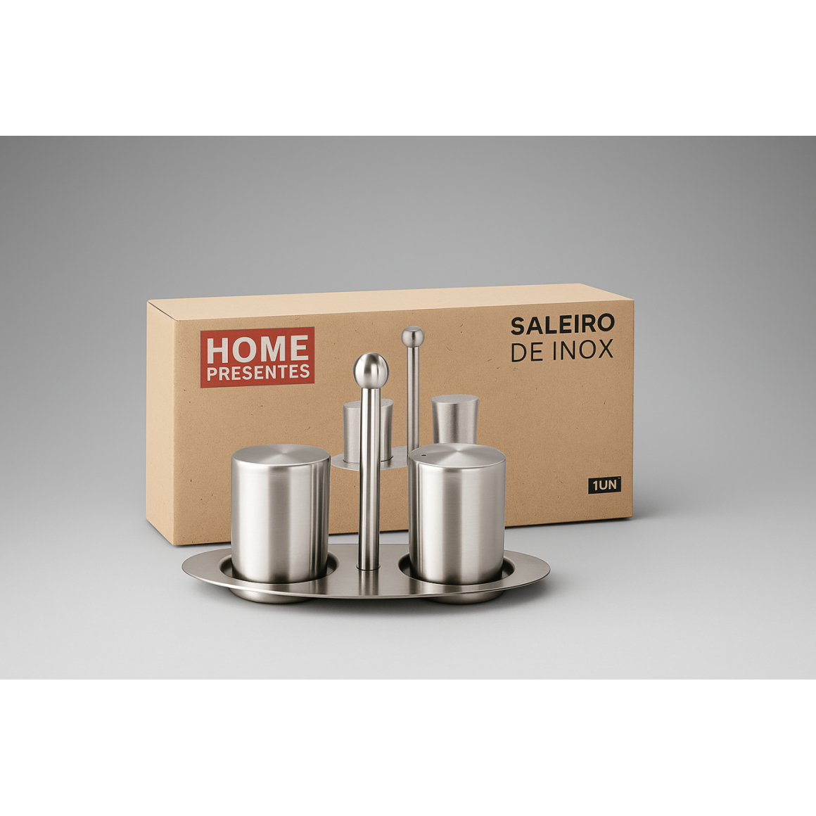 Saleiro e Pimenteiro de Inox – conjunto elegante e funcional, ideal para compor a mesa e facilitar o uso diário de temperos.