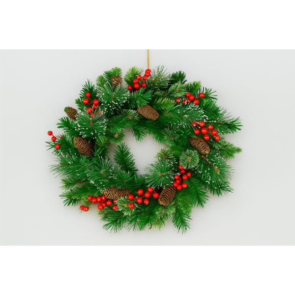 Guirlanda de Natal – sofisticada e versátil, perfeita para decorar portas, paredes, janelas ou composições natalinas, trazendo charme e aconchego ao ambiente.