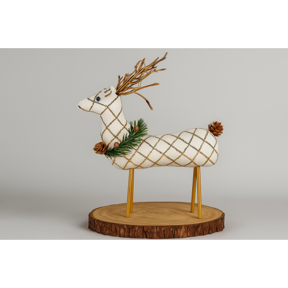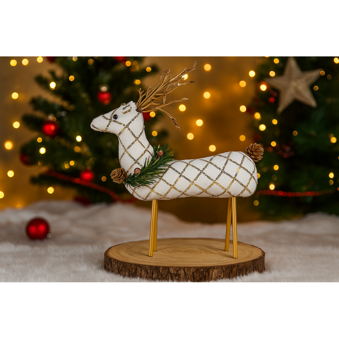 Rena Natalina Branca em Camurça – peça elegante e sofisticada, ideal para compor decorações de Natal com charme e delicadeza.