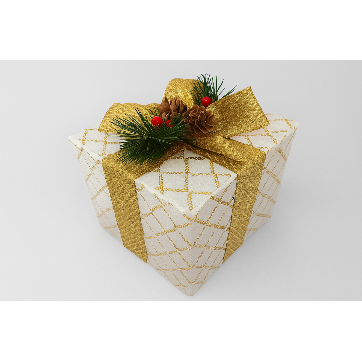 Caixa de Presente Natalino em Camurça Branca – peça sofisticada e elegante, ideal para dar um toque de requinte e charme à sua decoração de Natal.