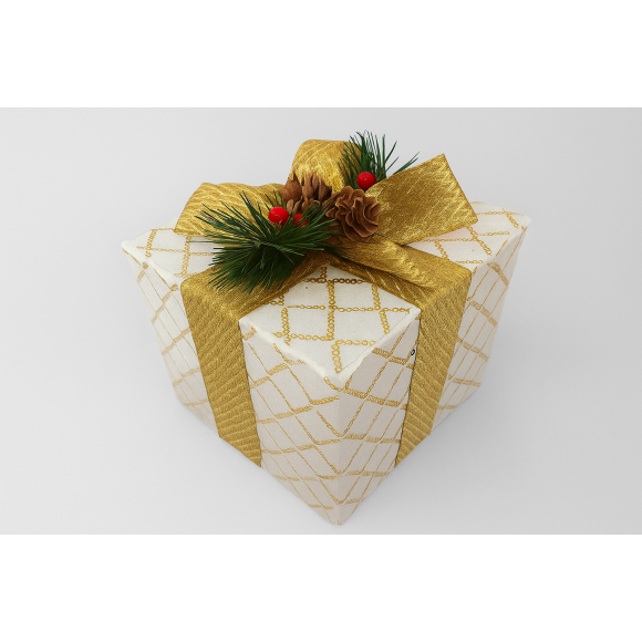 Design inspirado em caixa de presente natalina, símbolo de generosidade e celebração