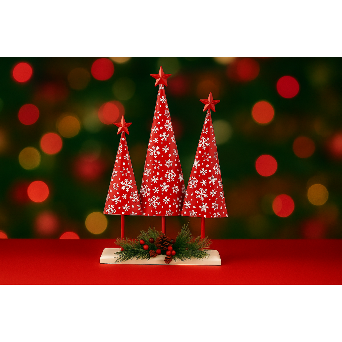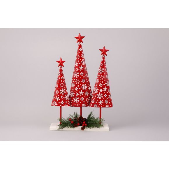 Trio de Árvores de Natal de Metal – peças decorativas modernas e sofisticadas, ideais para complementar a decoração natalina com charme e elegância.