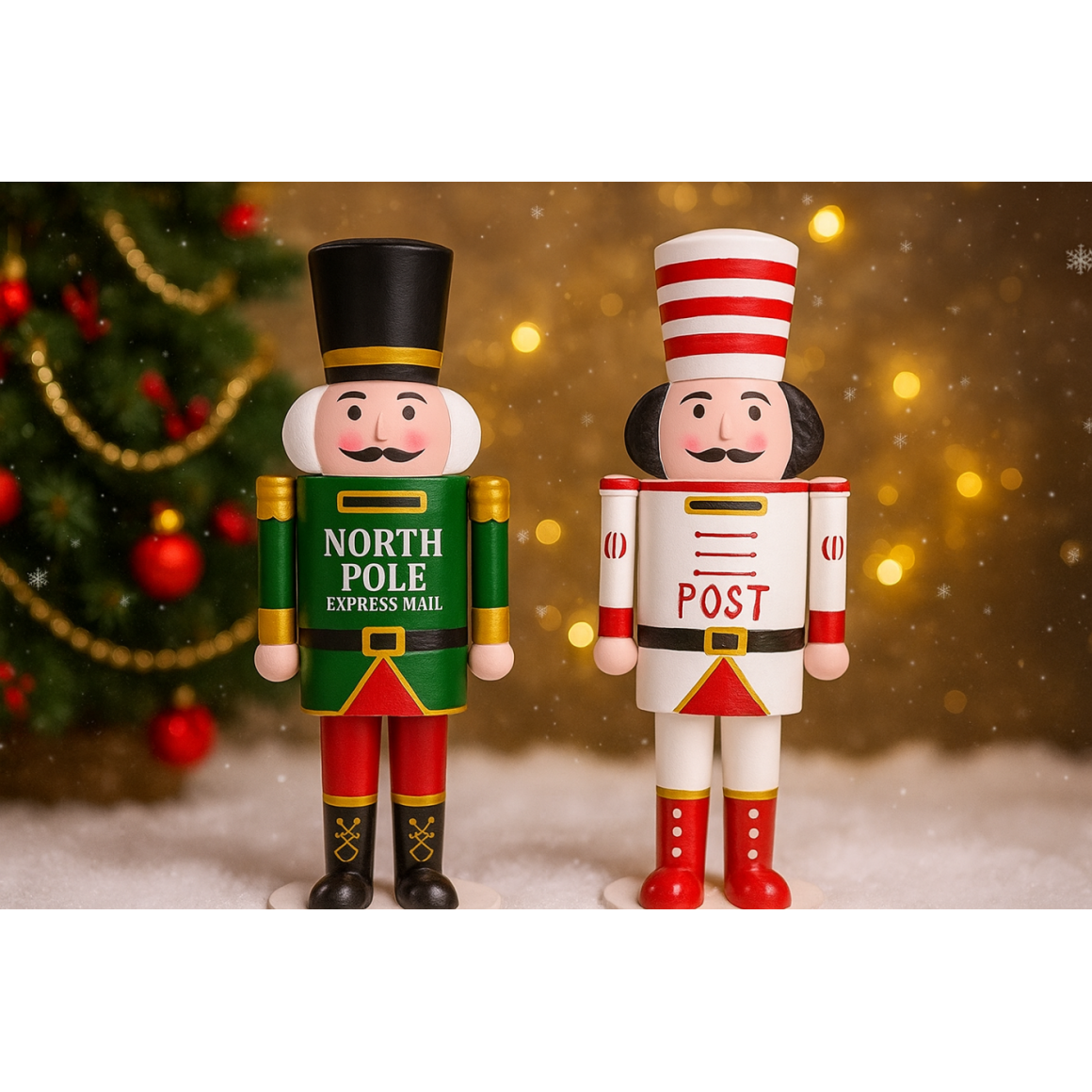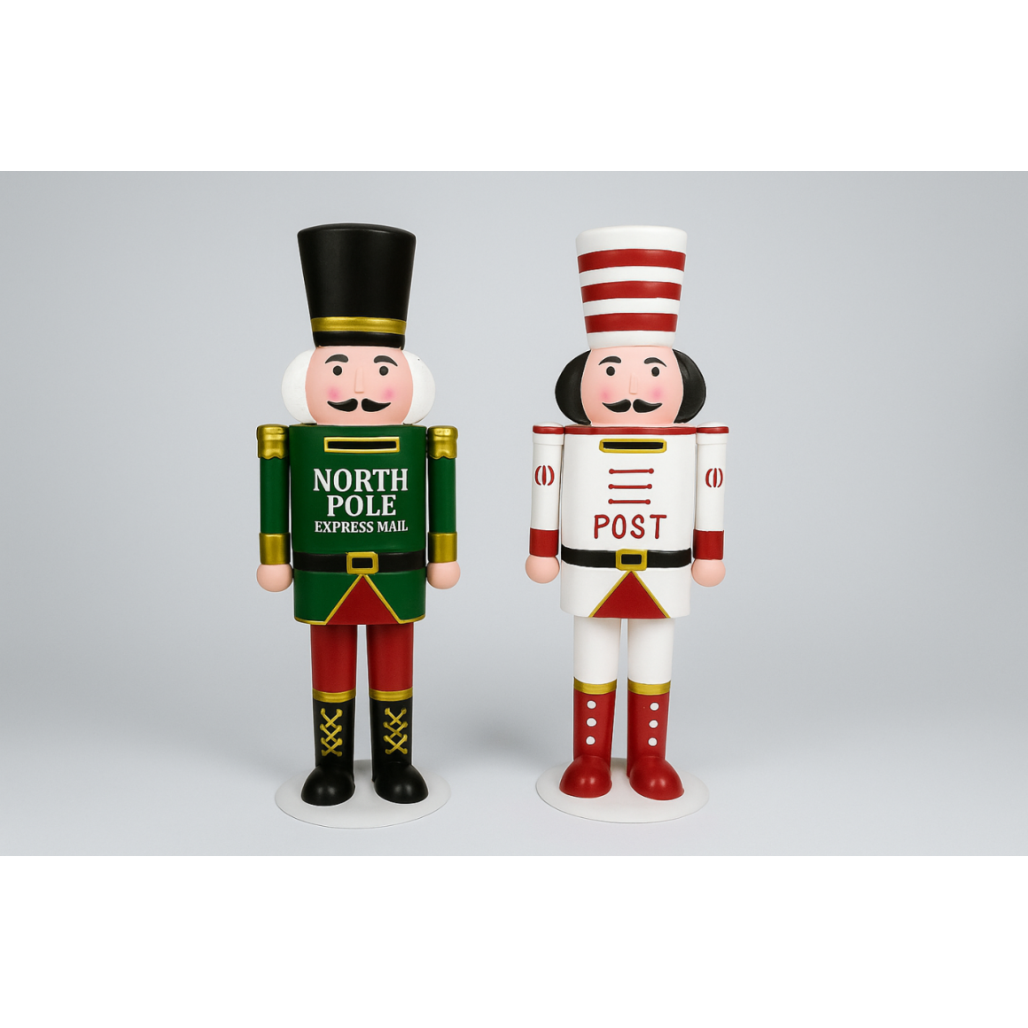 Caixa Postal Natalina de Metal com Soldadinho Quebra-Nozes – uma peça decorativa sofisticada e temática, que une charme clássico e funcionalidade para deixar sua decoração natalina ainda mais especial.