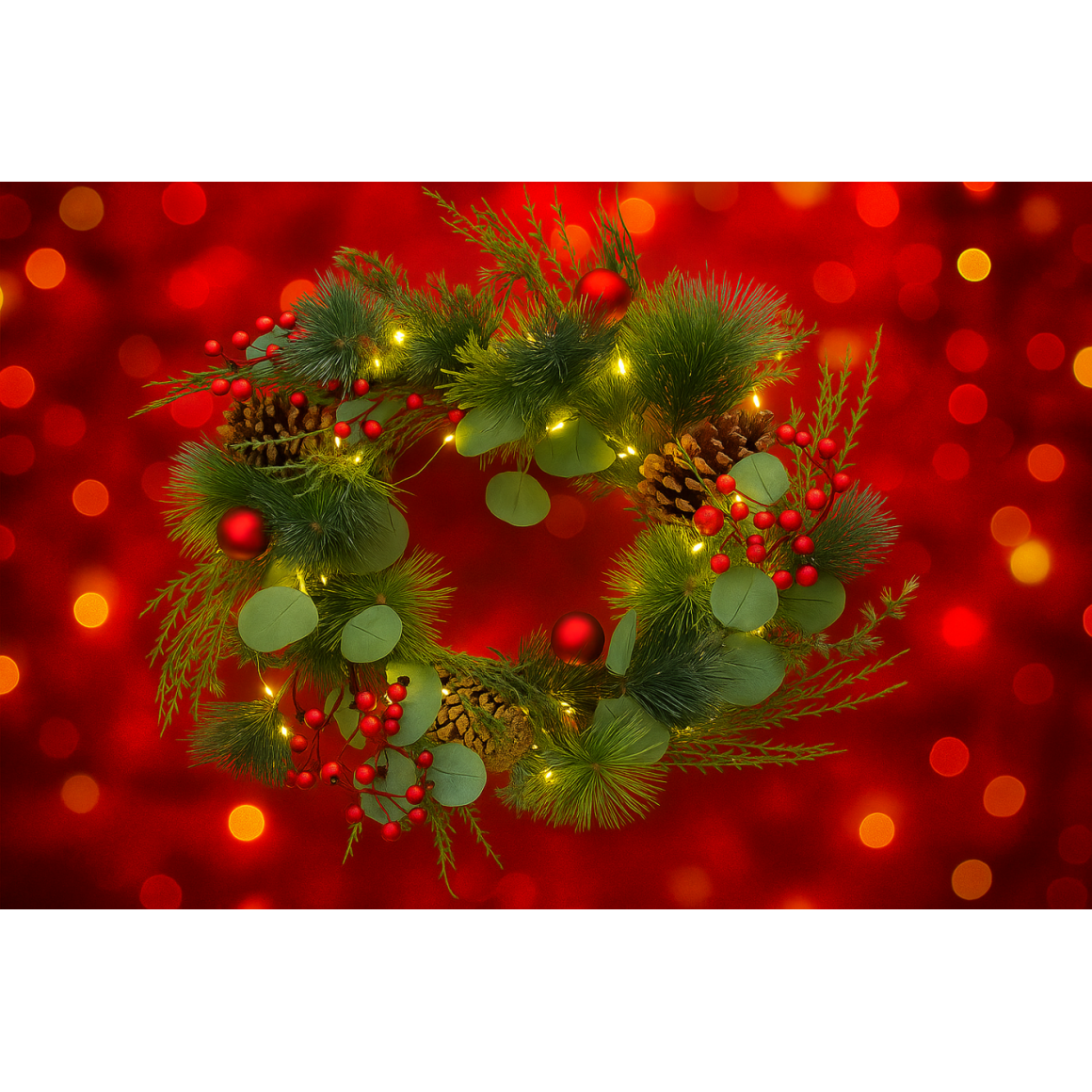 Guirlanda Natalina com LED – sofisticada, iluminada e encantadora, ideal para decorar portas, paredes e ambientes com brilho e elegância durante o Natal.