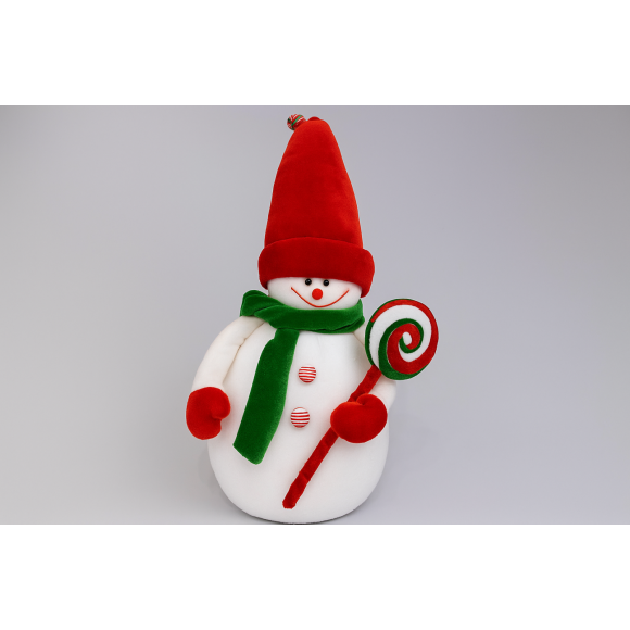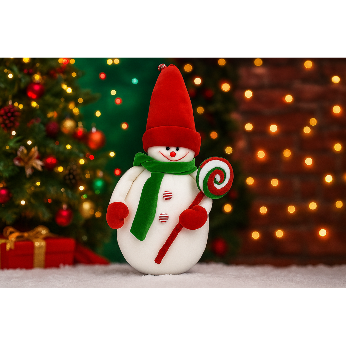 Boneco de Neve de Camurça – peça decorativa sofisticada e aconchegante, perfeita para deixar sua decoração natalina mais charmosa e elegante.