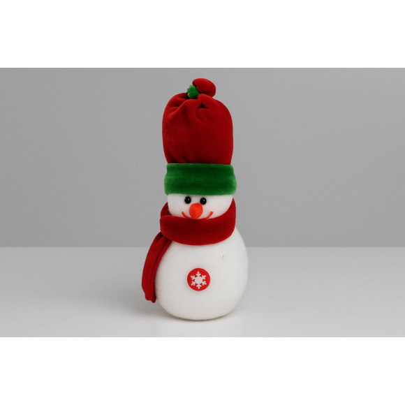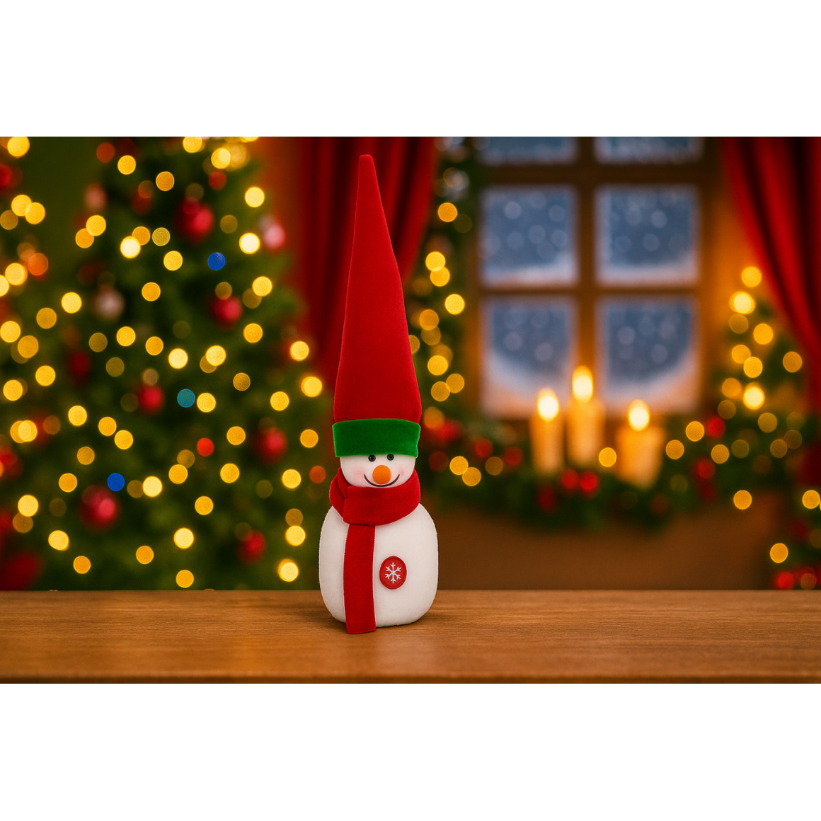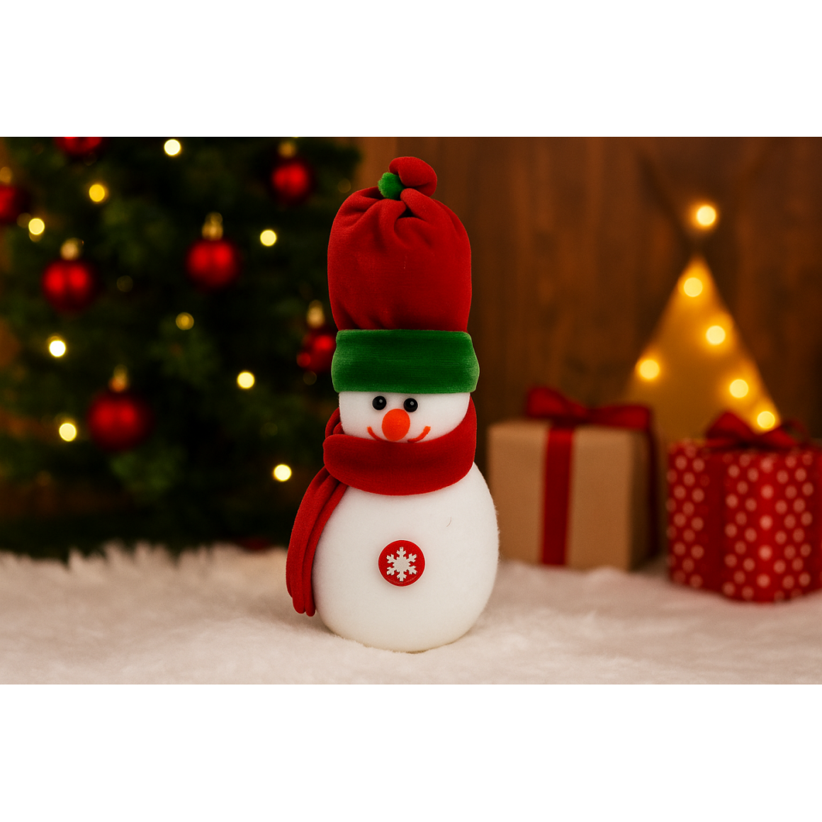 Boneco de Neve de Camurça – peça natalina delicada e charmosa, perfeita para complementar a decoração com um toque acolhedor e elegante.