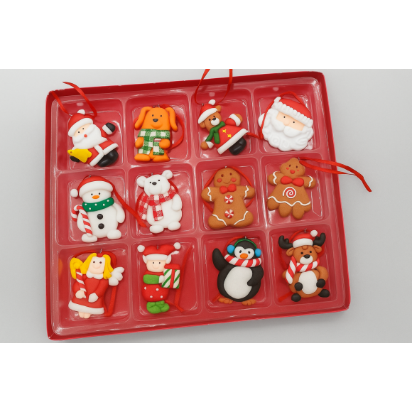 Resina/Plástico decorativo pintado com detalhes natalinos