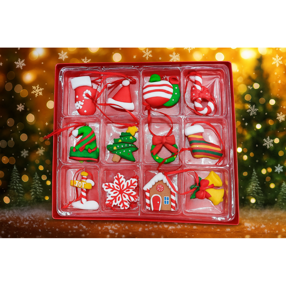 Kit de Biscoitos Natalinos Decorativos – peças delicadas e coloridas, ideais para enfeitar árvores, guirlandas, mesas e composições temáticas de Natal.