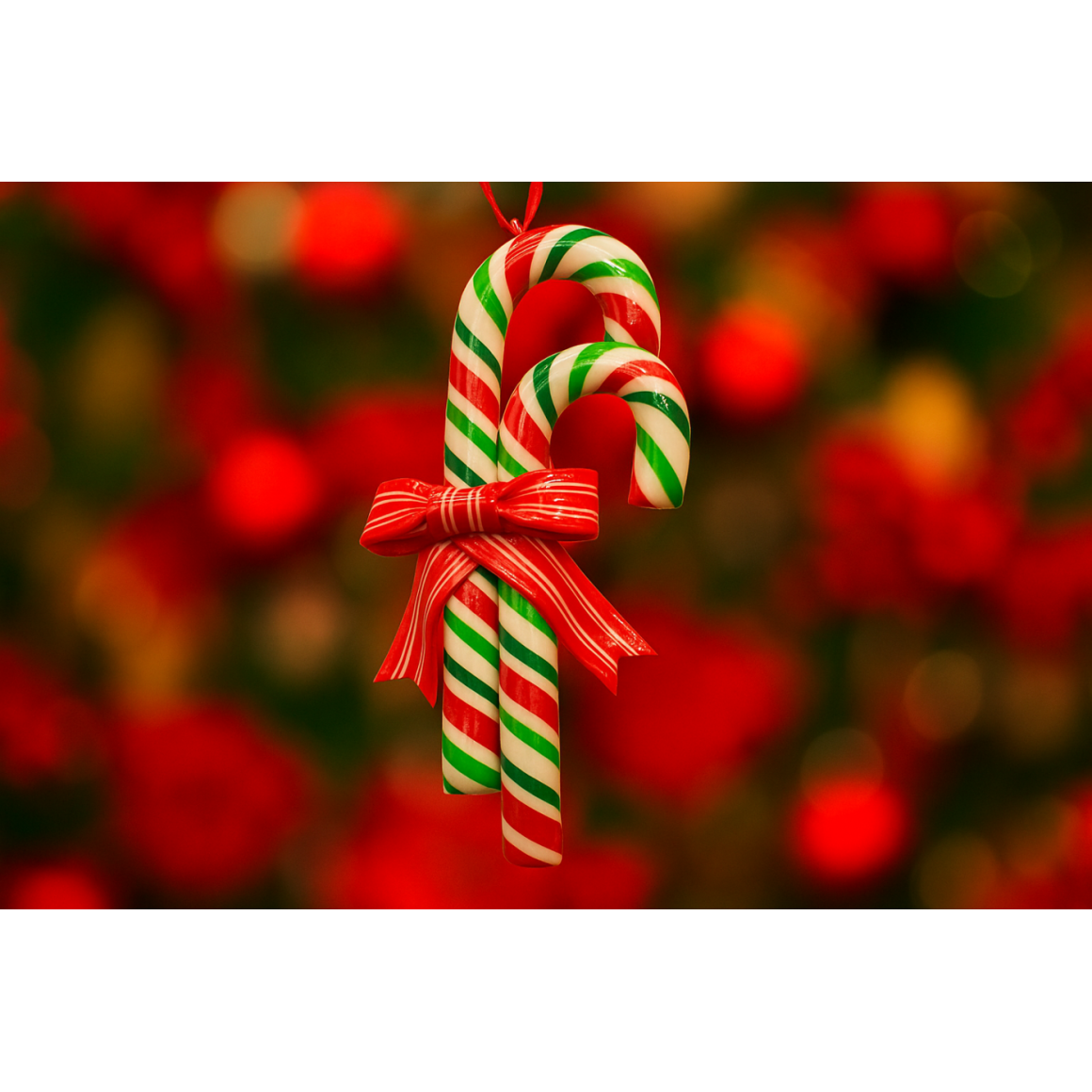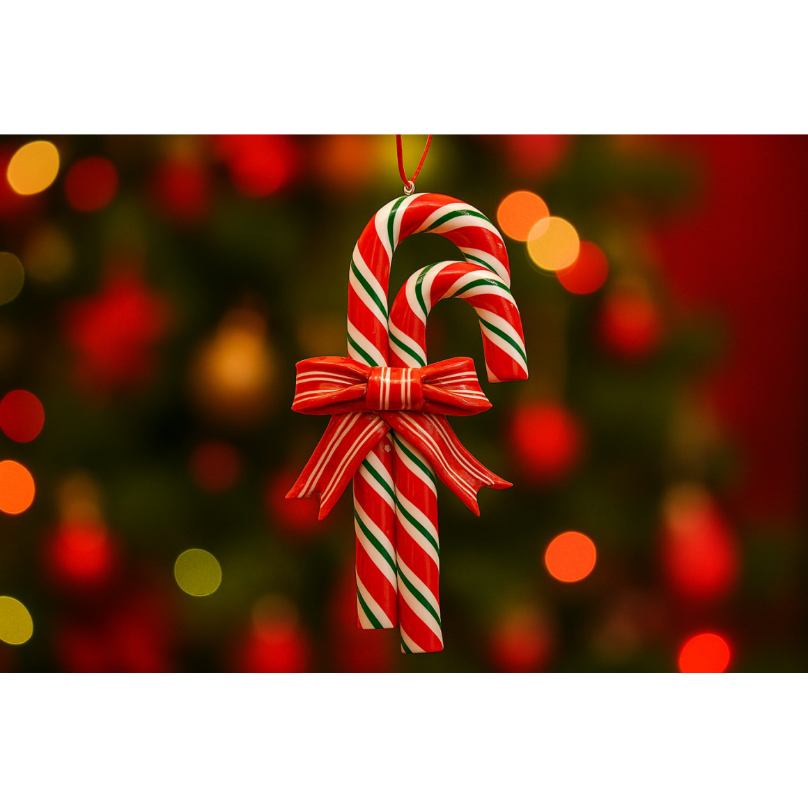 Bengala de Caramelo Natalino – enfeite decorativo clássico e colorido, ideal para pendurar na árvore de Natal ou compor arranjos festivos.