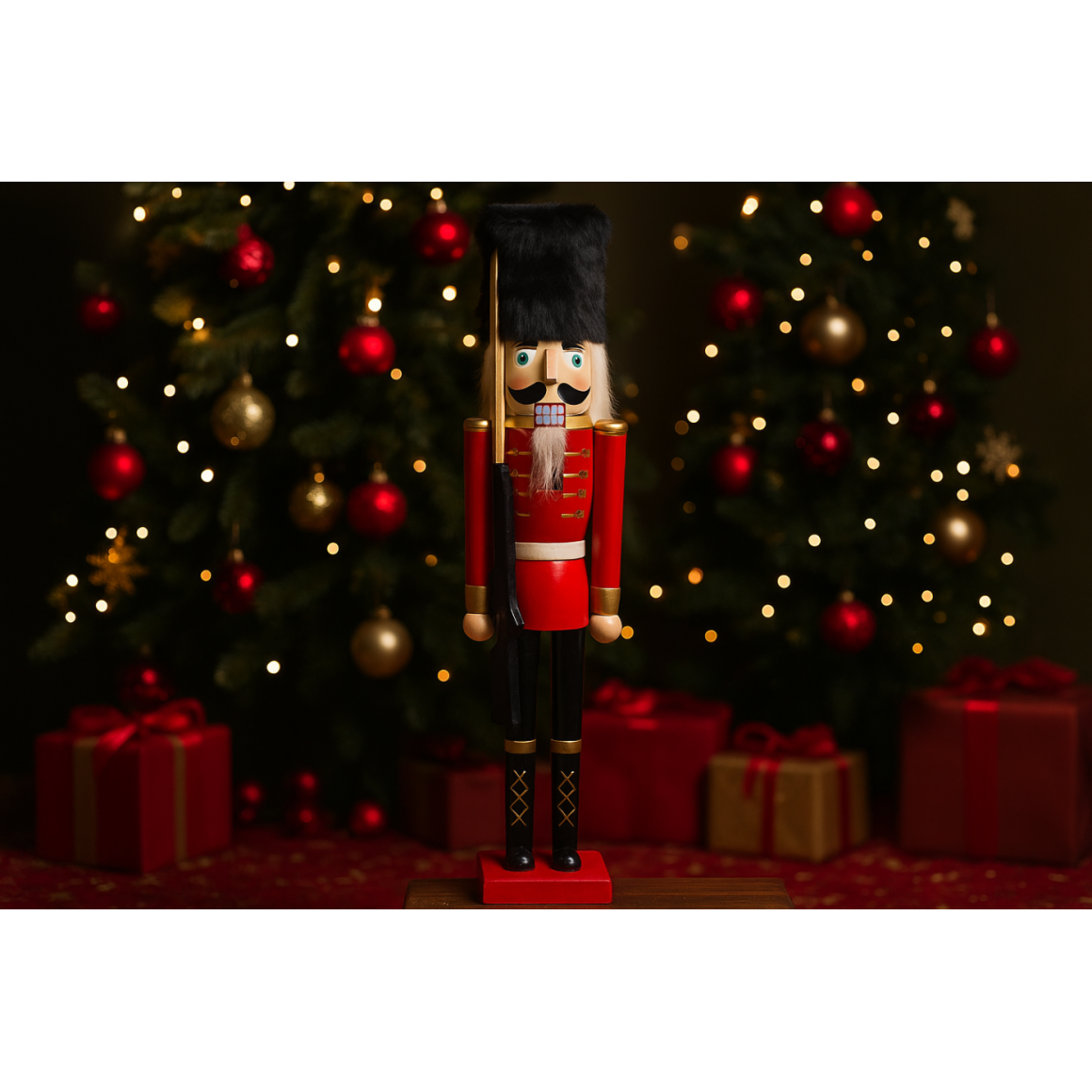 Soldadinho Quebra-Nozes Decorativo – peça natalina clássica e de destaque, perfeita para compor cenários sofisticados e trazer o espírito do Natal para residências e ambientes comerciais.