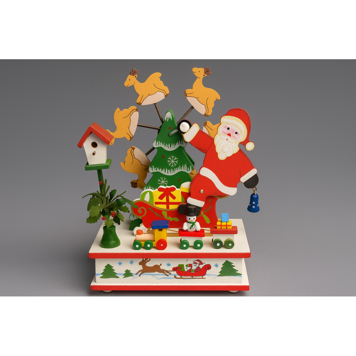 Caixa Musical Natalina – peça encantadora que une música, cor e tradição, perfeita para complementar sua decoração de Natal com elegância e charme.