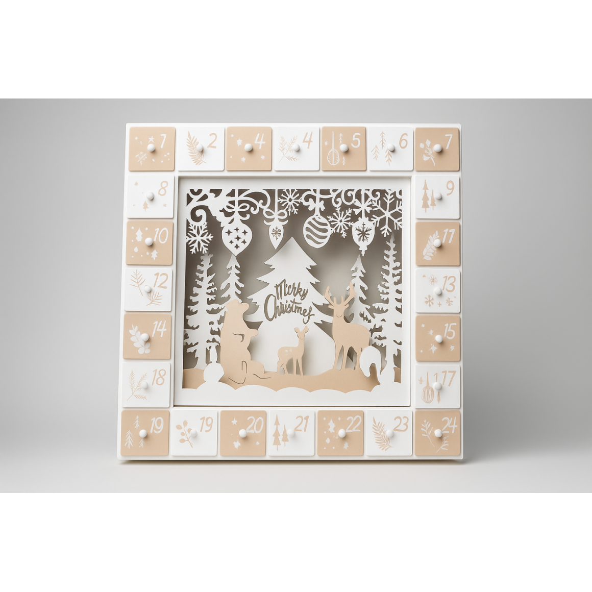 Design detalhado com janelinhas/compartimentos para a contagem regressiva do Natal