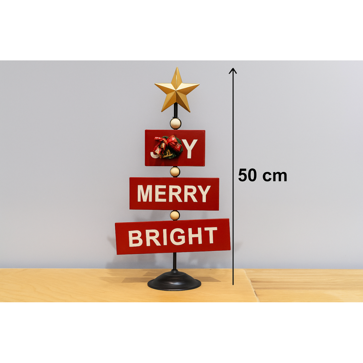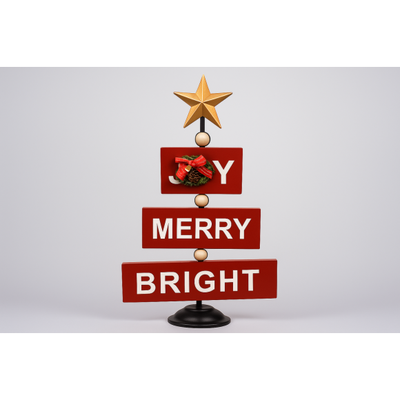 Placa Natalina – peça decorativa em metal, ideal para complementar a decoração de Natal com charme, estilo retrô e muita sofisticação.