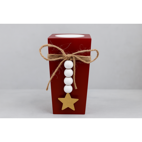 Castiçal Natalino – peça decorativa em madeira, ideal para dar um toque rústico, acolhedor e sofisticado à sua decoração de Natal.
