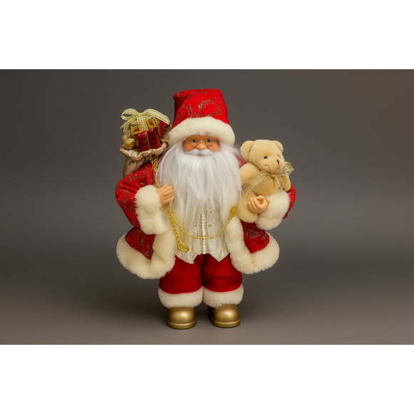 Enfeite Papai Noel de Luxo 30cm, uma peça sofisticada e detalhada, ideal para compor a decoração natalina com charme e elegância.