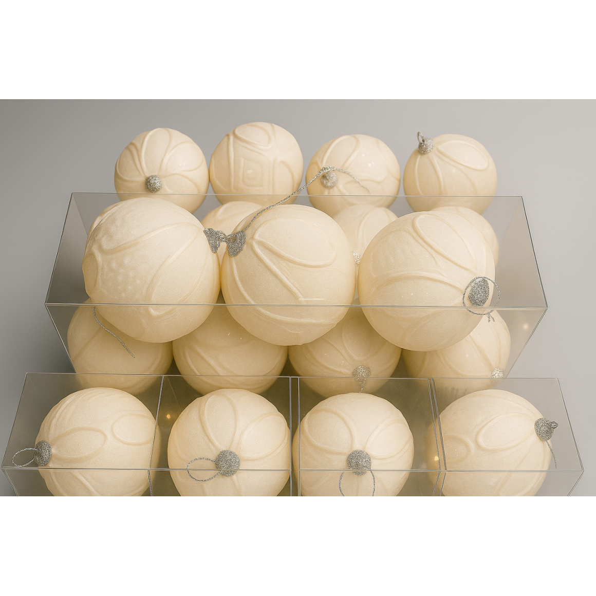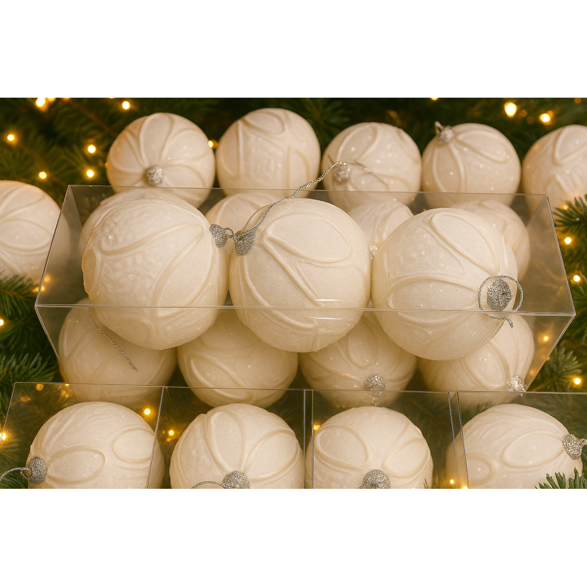 Trio de Bolas de Natal – conjunto decorativo encantador, ideal para dar um toque de brilho e sofisticação à sua árvore de Natal ou arranjos festivos.
