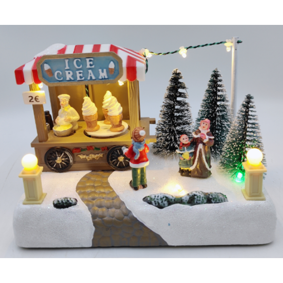 Enfeite Loja de Sorvete do Noel, uma peça divertida e encantadora que retrata o Papai Noel em sua loja temática de sorvetes, trazendo um toque criativo e original para a decoração natalina.