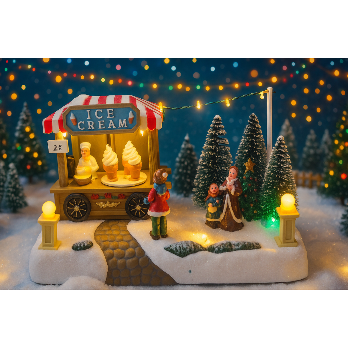 Perfeito para mesas, aparadores, estantes ou compor cenários de vilas natalinas. A loja de sorvete do Noel é um enfeite diferenciado que transmite alegria, charme e o verdadeiro espírito do Natal, tornando a decoração ainda mais especial.