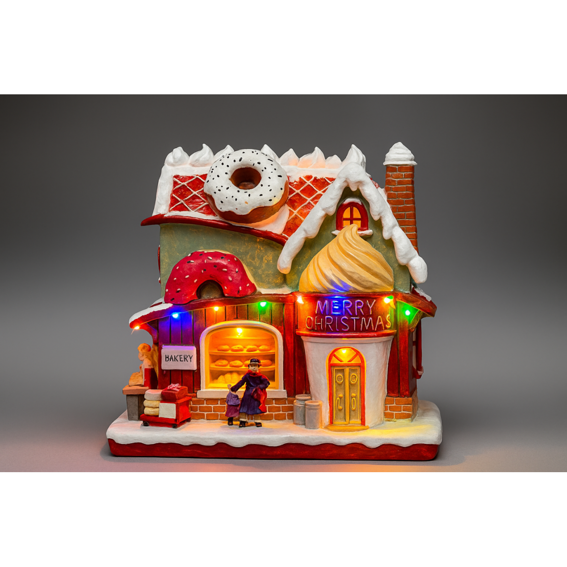 A Vila Natalina Donut com Luzes LED é uma peça encantadora e sofisticada, perfeita para deixar sua decoração de Natal ainda mais mágica. Com design detalhado, leds iluminados e movimento, recria o clima natalino de forma alegre e acolhedora, ideal para ambientes residenciais ou comerciais.