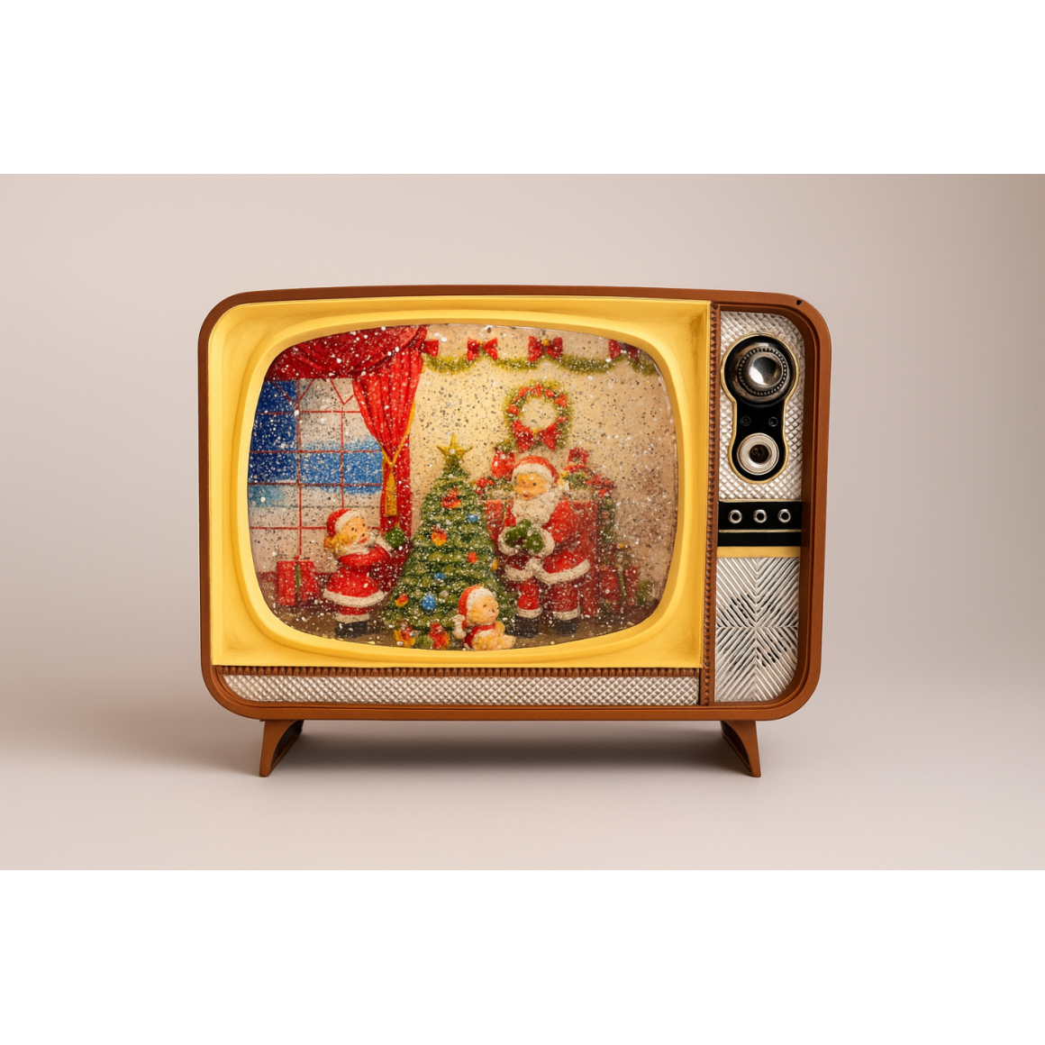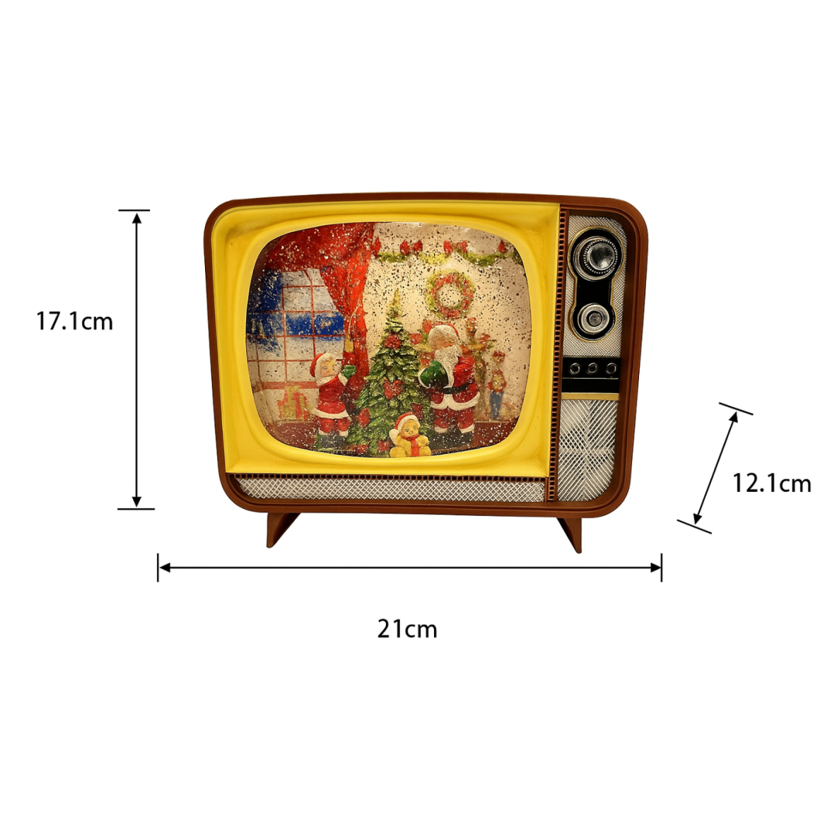 Enfeite Televisão Natalino 21cm, uma peça decorativa charmosa que une nostalgia e o espírito natalino em um único item. A mini TV apresenta cenas natalinas encantadoras, iluminadas e cheias de detalhes que tornam o ambiente ainda mais acolhedor.