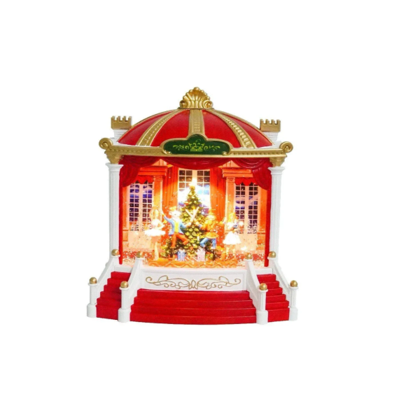 Enfeite Teatro Quebra Nozes 24cm, peça natalina sofisticada e cheia de detalhes que recria o encanto do clássico espetáculo do Quebra-Nozes, trazendo arte e magia para sua decoração de Natal.