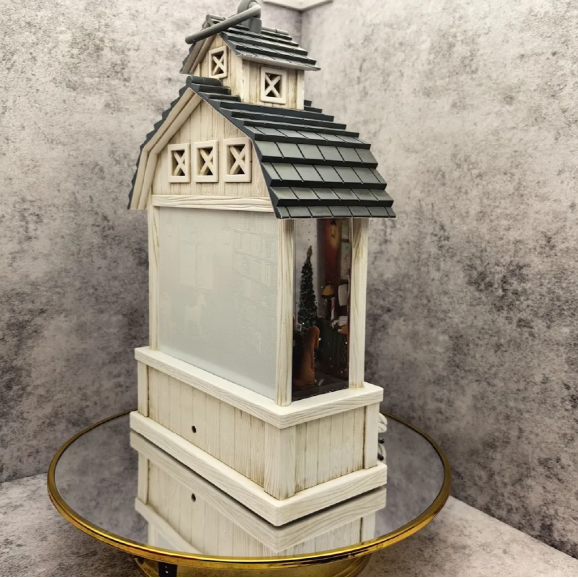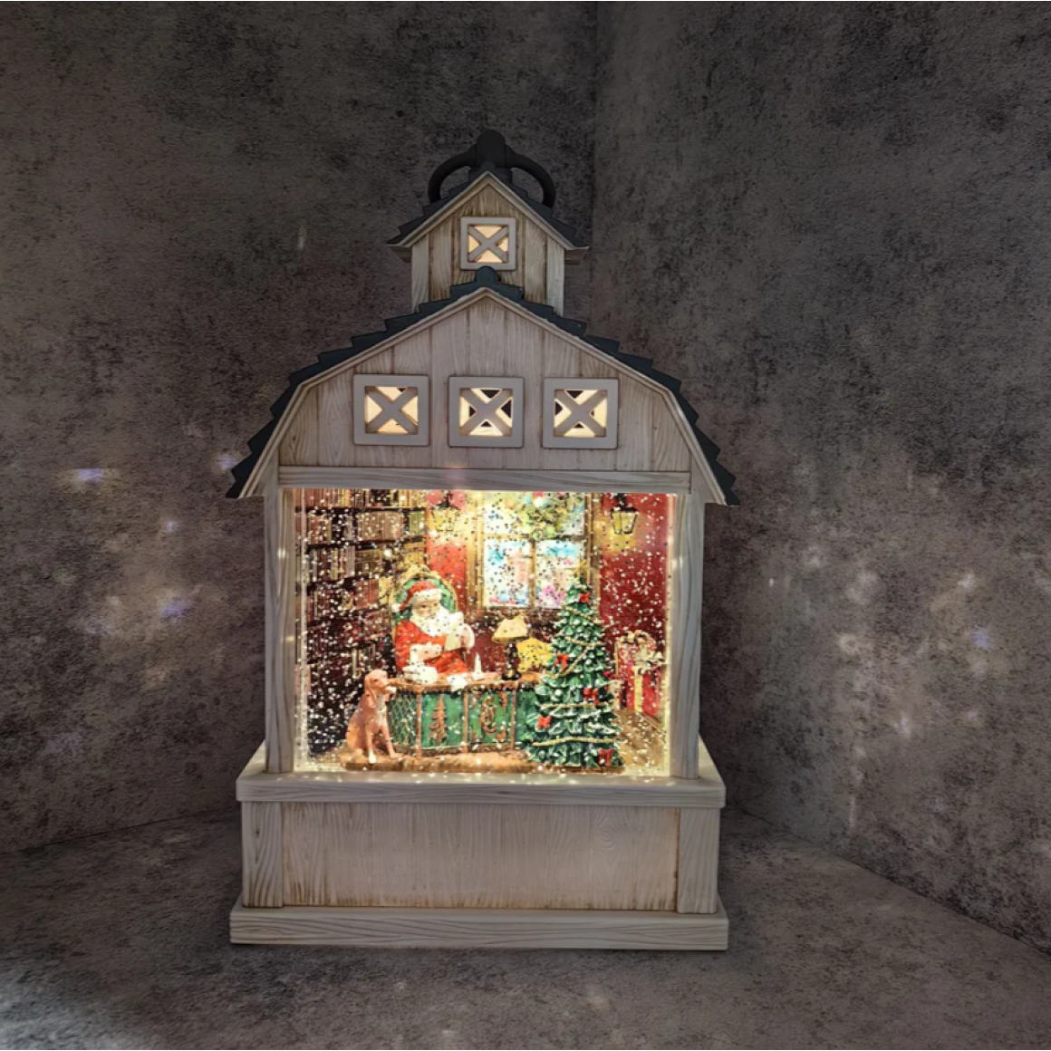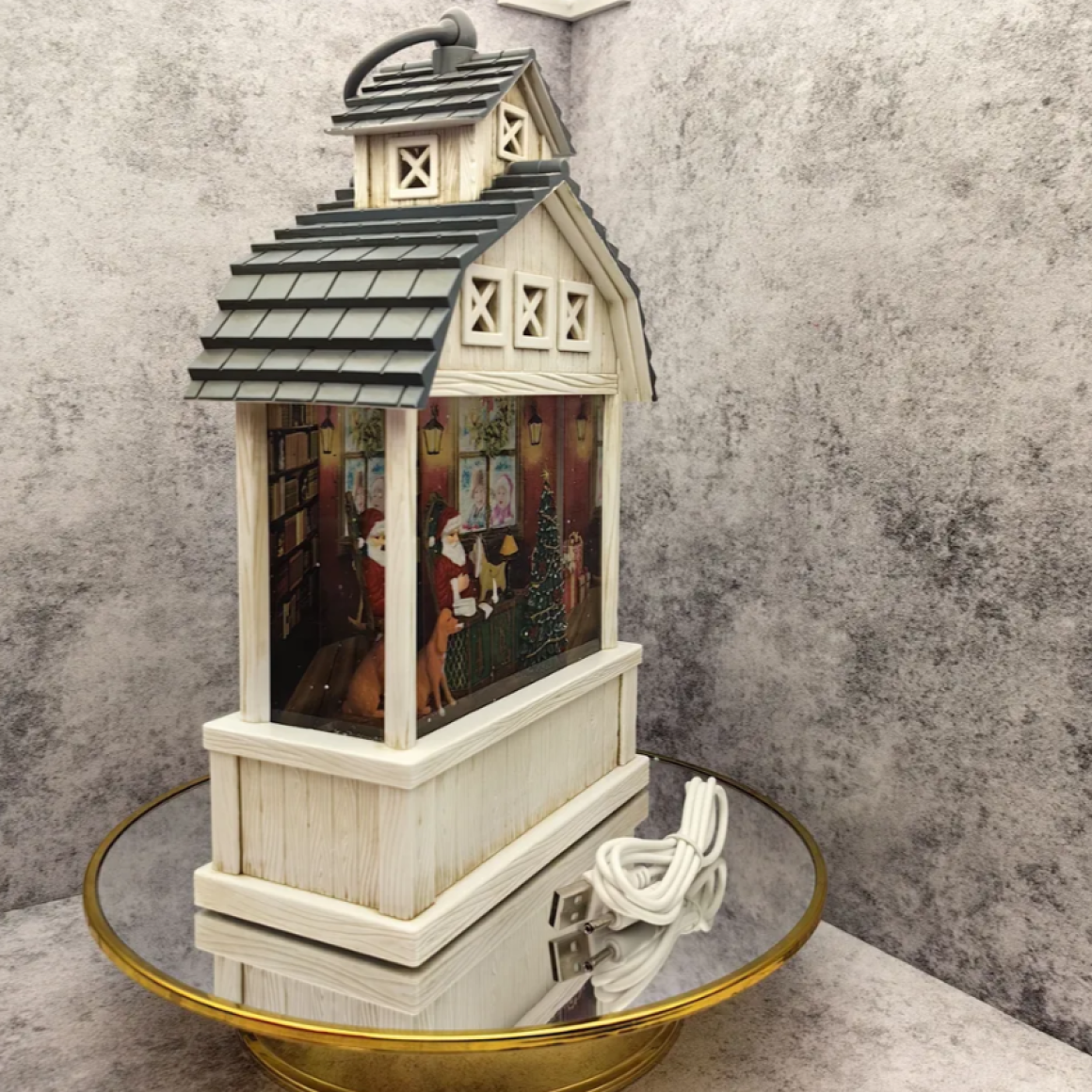 Resina e plástico de alta qualidade, com pintura detalhada e acabamento artesanal que reproduz janelas, portas e telhado em estilo natalino.