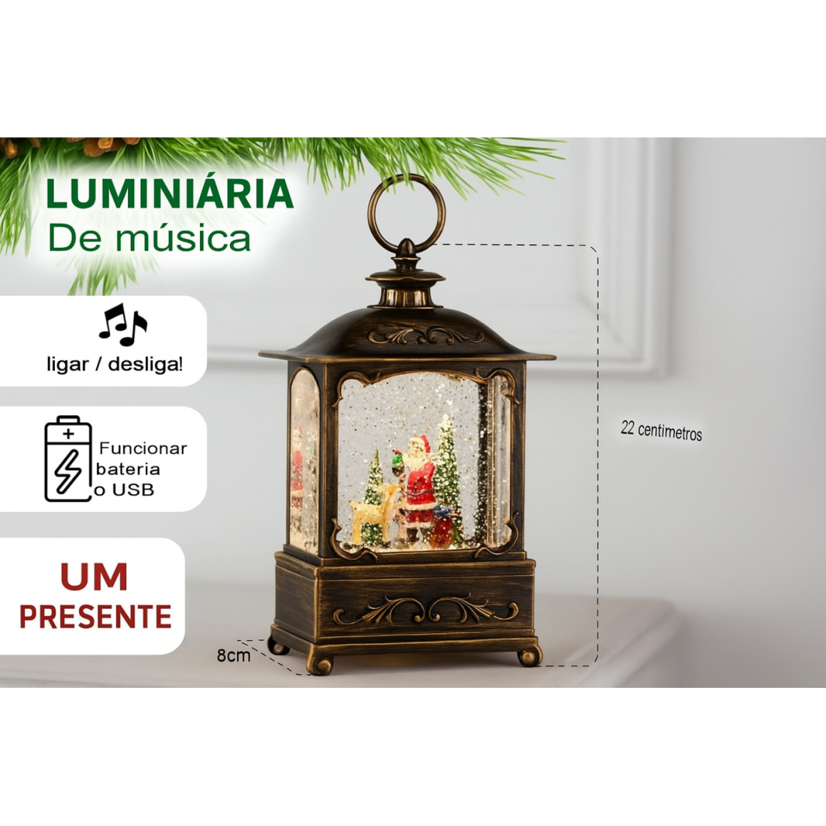 Design exclusivo, inspirado em lamparinas antigas com toque natalino.