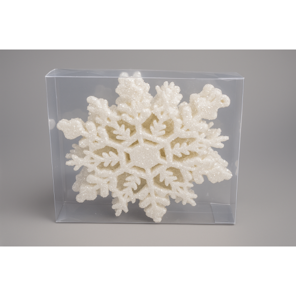 Produzidos em plástico leve e resistente, os flocos de neve possuem design detalhado e acabamento que proporciona um toque elegante e sofisticado à sua decoração natalina.