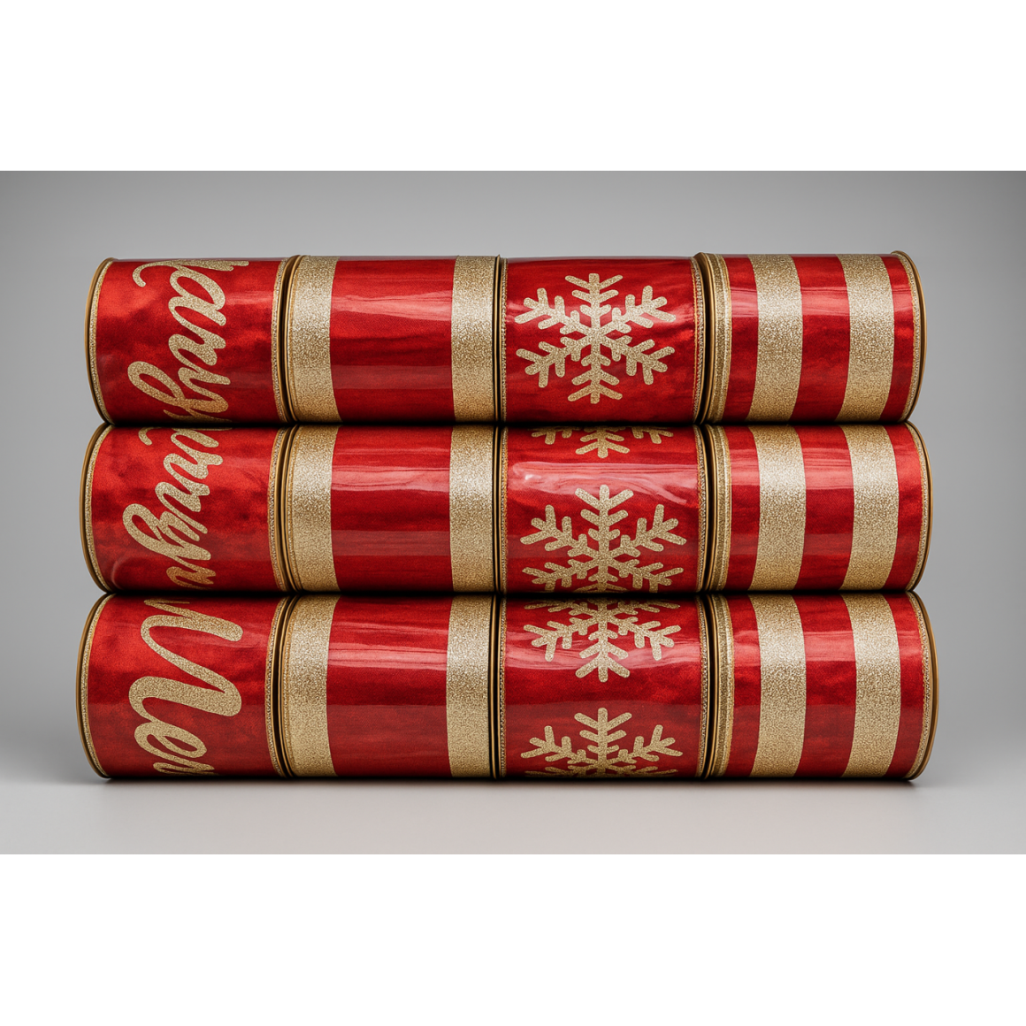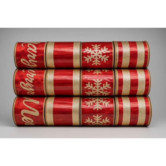 Cores: Vermelho com dourado (variações: listras, flocos de neve e “Merry Christmas”)