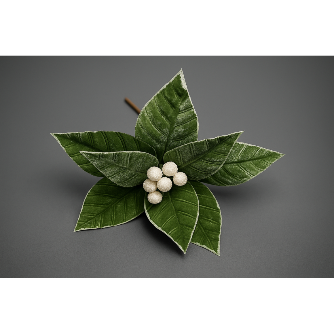 Flor Natalina Pick 18cm – Verde com Detalhes Brancos