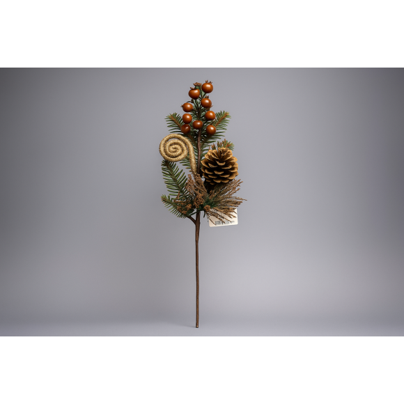 Composto por pinhas naturais, frutinhas marrons brilhantes e detalhes em folhagem natalina com toque campestre, este pick é ideal para quem deseja criar uma decoração aconchegante e sofisticada. O acabamento com espirais decorativas de juta traz um toque artesanal que valoriza ambientes clássicos, rústicos ou modernos.