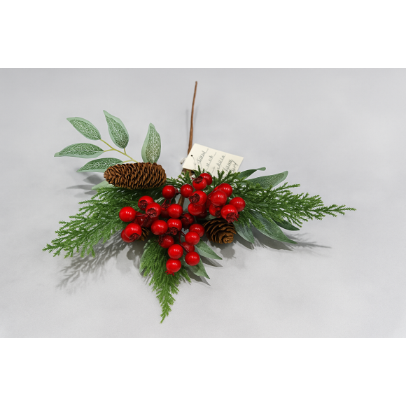 CEREJA NATALINA COM FOLHAGEM E PINHA 25CM