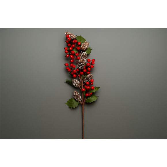A Cereja Natalina 78cm é uma peça decorativa sofisticada que traz o charme clássico do Natal para os seus arranjos, guirlandas e árvores. Composta por galhos alongados, é decorada com frutinhos vermelhos brilhantes, folhas verdes com acabamento natural e pinhas pintadas em tom nevado, que criam um contraste elegante e festivo.