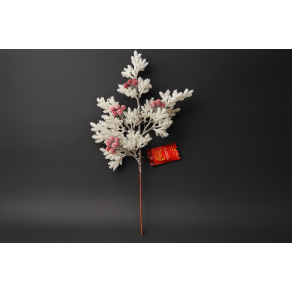 O galho natalino de 65cm traz todo o charme da decoração de inverno, com acabamento nevado que cria um efeito encantador de galho coberto de neve. Decorado com pequenas cerejas vermelhas com glitter suave, ele combina perfeitamente com pinheiros, guirlandas, arranjos e centros de mesa.