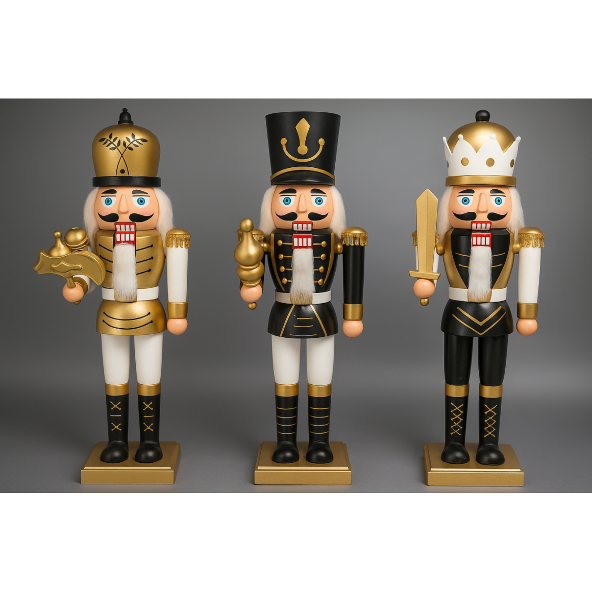 Leve elegância e sofisticação à sua decoração de Natal com o Soldado Quebra-Nozes Musical de 52cm. Inspirado no clássico personagem natalino, ele apresenta acabamento refinado em tons de dourado, preto e branco, com detalhes pintados à mão e acabamento brilhante.